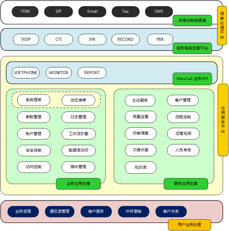 基于博讯嘉德基于自主研发的Web Application Framwork应用框架核心技术,开发出一系列操作简便,实用性高、稳定性强、技术先进的智能企业资源管理功能,涵盖人员企业资源管理、客户关系管理、售后服务、电话营销所需的业务功能,配合MarsCall产品可以实现多种外呼营销中心、客户服务中心等解决方案。